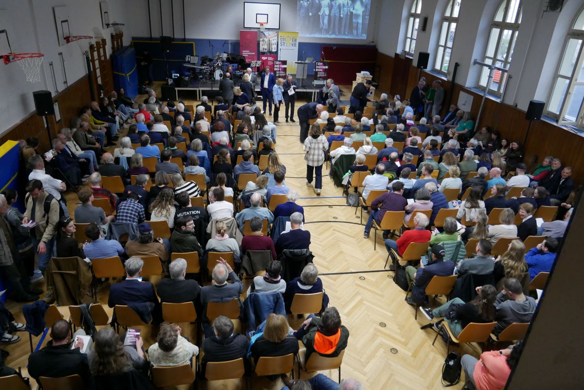 Rund 250 Personen, darunter auch viel Prominenz, verfolgten die Abendveranstaltung: Eingerahmt von Musik, die den Nazis bestimmt nicht gefallen hätte (u. a. Jazz, Swing) stellte Miriam Fridgen ein Kunstprojekt zu Fritz Reinleins Abiturfoto vor. Anschließend hielten Emilia Altergott, Ida Bögelein und Hannah Braun (alle Q12) einen Live-Podcast zu Fritz Reinleins Leben. In einem Vortrag mit dem Titel „Täter in Roben“ behandelte dann Frau Elisabeth Kohlhaas (Leiterin des Erinnerungsortes Torgau) Verbrechen, Täter und Aufarbeitung der NS-Militärjustiz. Nach schwierigen und erschütternden Inhalten tat es gut, dass am Ende ein Zeichen der Hoffnung gesetzt wurde: Andreas Kleibe (Klasse 6b) spielte am Klavier ohne Noten das Präludium und Fuge in c-Moll von Johann Sebastian Bach.