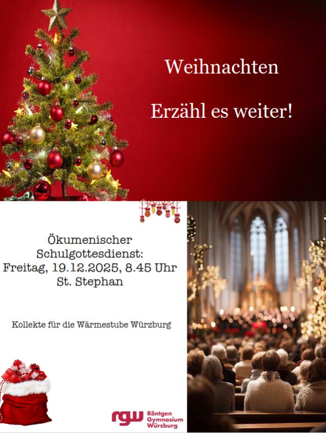 Wir laden ein zum ökumenischen Gottesdienst am Freitag, 19.12.2025, 8.45 Uhr (St. Stephan, Würzburg).