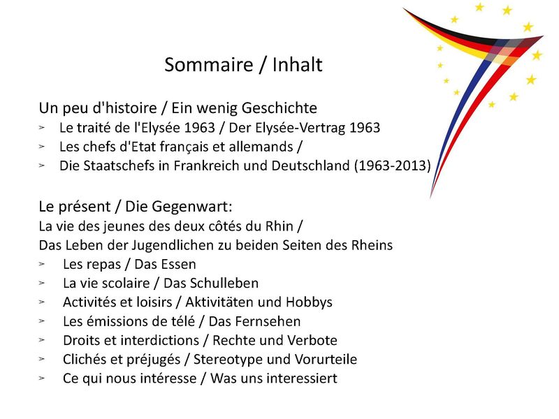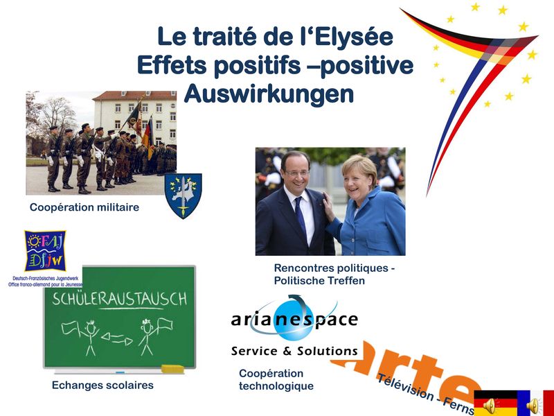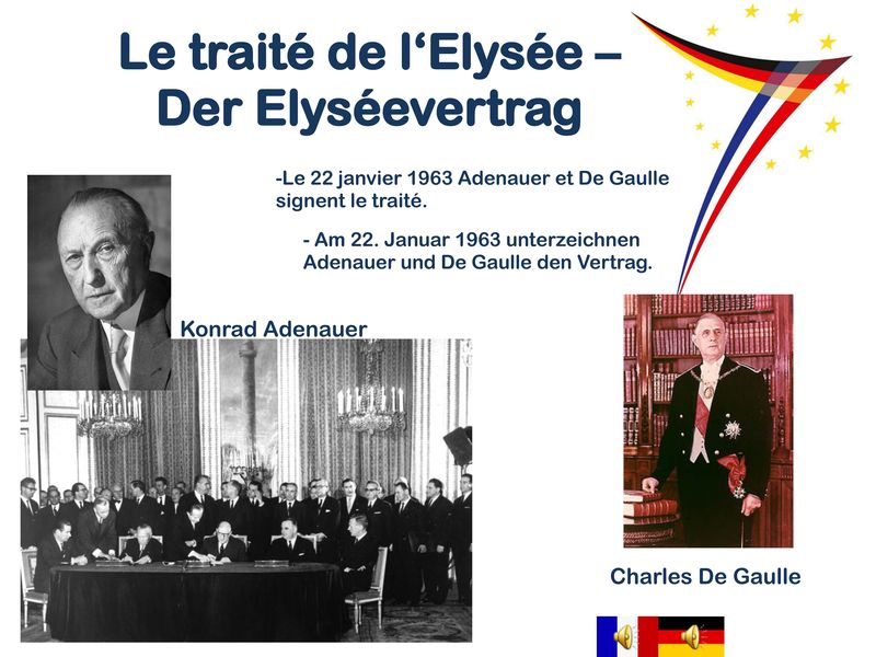 Zum 55. Jahrestag des Elysee-Vertrags am 22. Januar kommen auch die Parlamente in Berlin und Paris zu Sondersitzungen zusammen, um in einer gemeinsamen Resolution einen neuen Elysée-Vertrag auf den Weg zu bringen. 55 Jahre nachdem dieser zum ersten Mal von Konrad Adenauer und Charles de Gaulle besiegelt wurde, sind die bilateralen Beziehungen zwischen Deutschland und Frankreich einzigartig: mehr als 2.200 Städtepartnerschaften, 175 universitäre Doppelabschlüsse, die in beiden Ländern anerkannt werden, und über 1.600 französische Unternehmen mit Sitz in Deutschland sowie fast 3.000 deutsche Firmen in Frankreich.