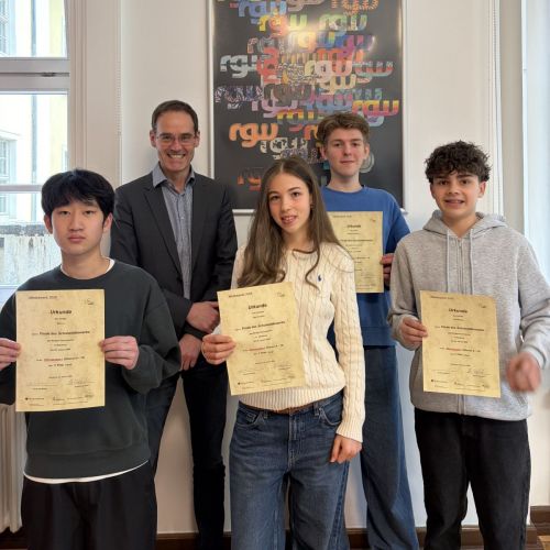 „Nach dem Wettbewerb ist vor dem Wettbewerb!“ Wenige Wochen nach dem Schulentscheid traten Zina Gramlich und Maksym Shebanov in Hösbach beim Regionalentscheid Unterfranken-West an. Beide landeten auf respektablen Plätzen in der vorderen Hälfte aller teilnehmenden Schulen und haben das RGW würdig vertreten! Erneut unterstützte der Förderverein das demokratieförderliche Projekt sehr großzügig.